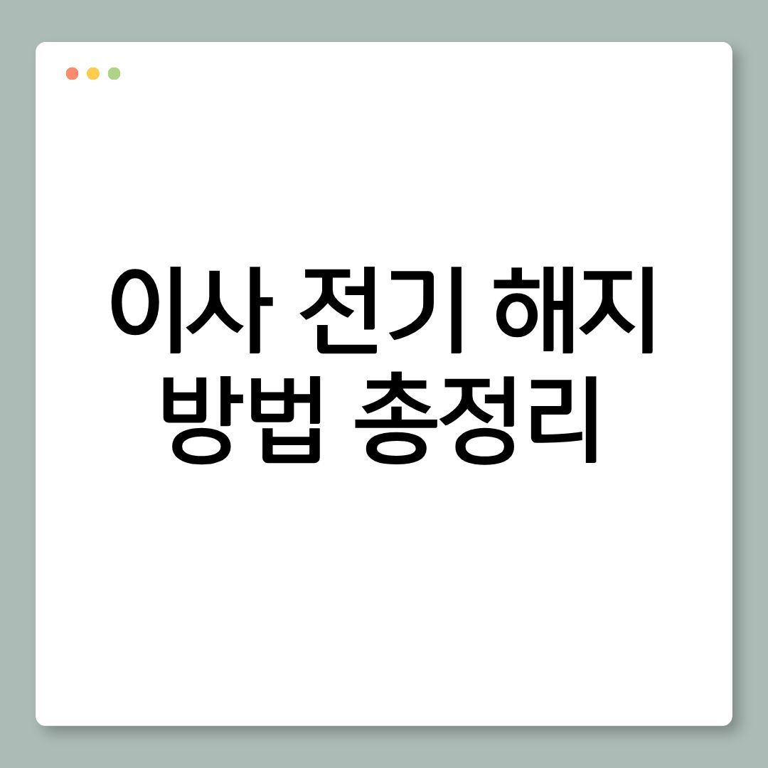 전기를 해지하지 않으면 이사 간 뒤에도 전기 요금이 계속 청구될 수 있기 때문에, 이사 전날이나 이사 당일에 맞춰 **한국전력(Kepco)**을 통해 해지 신청을 하는 것이 안전합니다.