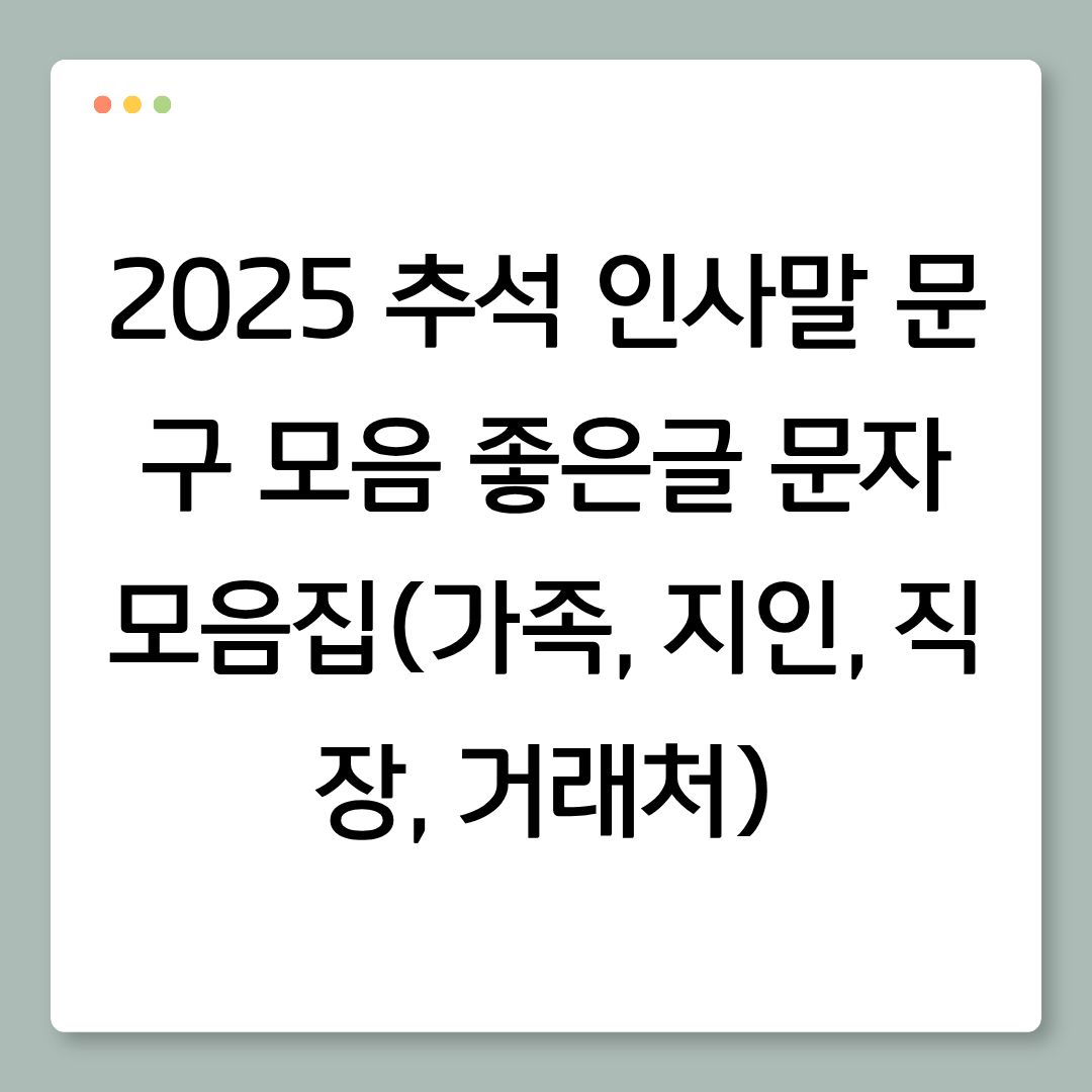 이번 글에서는 가족, 지인, 직장동료, 거래처까지 모두에게 전할 수 있는 다양한 추석 인사말과 덕담 문구를 모아 봤습니다. 문자, 카톡, 카드, 블로그 인용용으로도 모두 활용하기 좋으니 꼭 사용해 보세요.