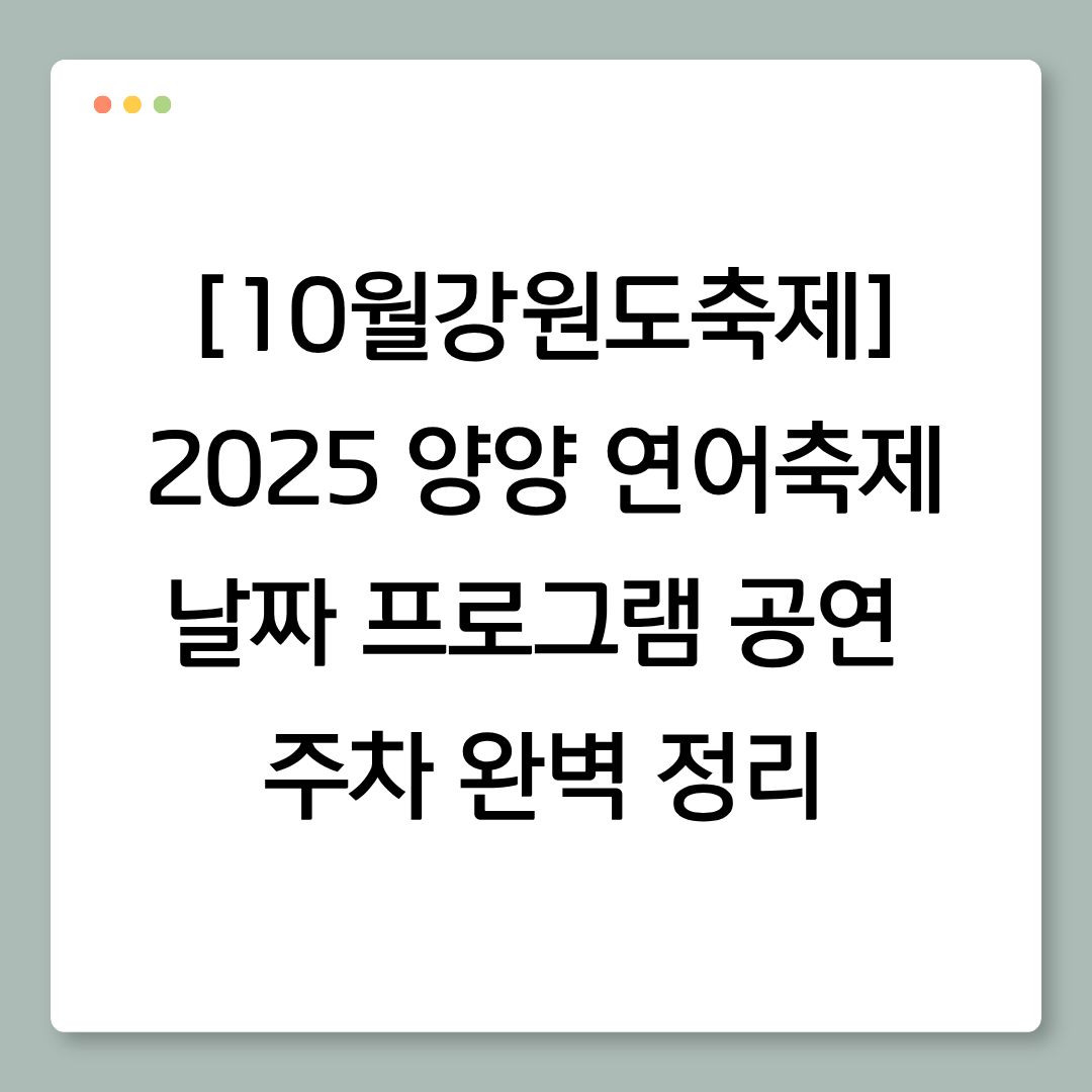 이번 글에서 2025 양양 연어축제의 날짜, 프로그램, 공연(초대 가수), 주차 정보 까지 모두 정리했으니 양양 나들이에 참고해 보세요.